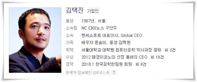 2위는 게임회사 엔씨소프트를 창업한 김택진 태표 입니다. 138억 3600만 원의 연봉을 받았습니다. 월급으로 계산해 보니 대략 11억 5300만 원 정도가 되는 것 같습니다.