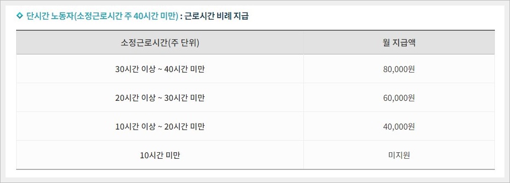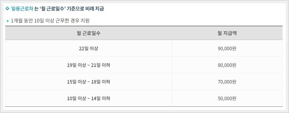 지원금액의 경우 각각 단시간 노동자 일용근로자에 따라서 각각 기준과 금액이 다르니 참고하시기 바랍니다.