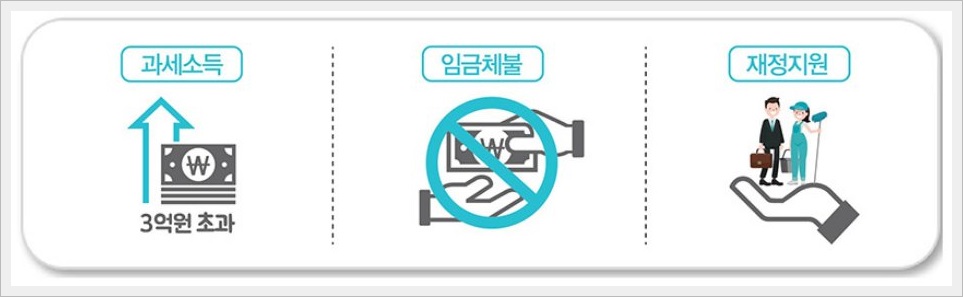 특히 과세소득이 3억을 초과하는 고소득 사업주, 임금체불로 인하여 명단이 공개되어 있는 사업주, 국가에서 인건비 재정지원을 받고 있는 사업주는 제외가 된다고 하니 참고하시기 바랍니다.