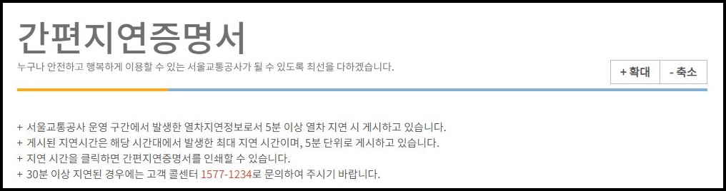 서울교통공사는 이러한 직장인들을 위해서 지하철이 부득이한 상황으로 인하여 연착이 될 경우 지하철 연착 지연서를 발행해 주고 있습니다. 덕분에 회사에 제출을 하면 어느 정도 감안은 되지 않을까 생각합니다.