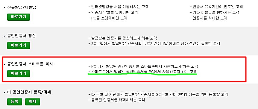 핸드폰 공인인증서 옮기기, 가져오기방법 SC은행 외 모든은행