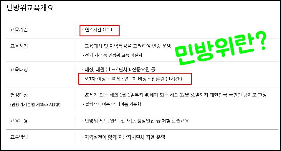 민방위 훈련 나이