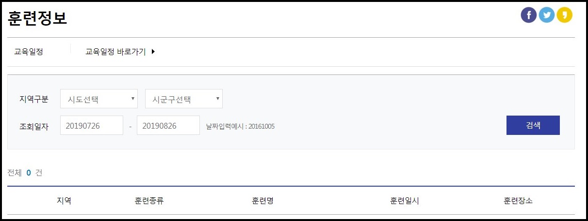 자신이 현재 거주하고 있는 지역에서 훈련을 받기 때문에 해당 동을 입력해서 조회하면 쉽게 확인할수가 있다.