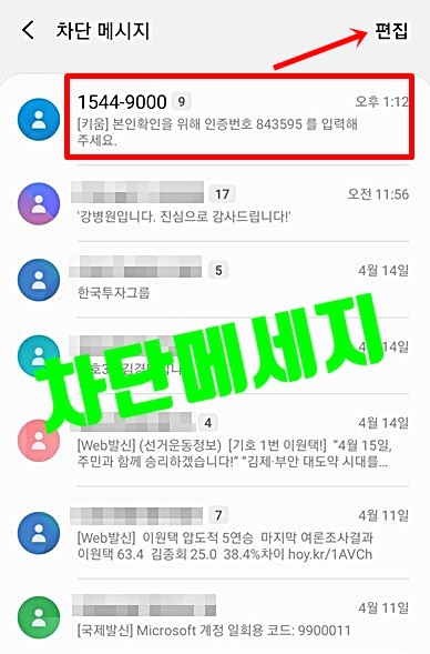 차단 메시지 해제를 하기 위해서는 편집 버튼으로 접속하면 된다.