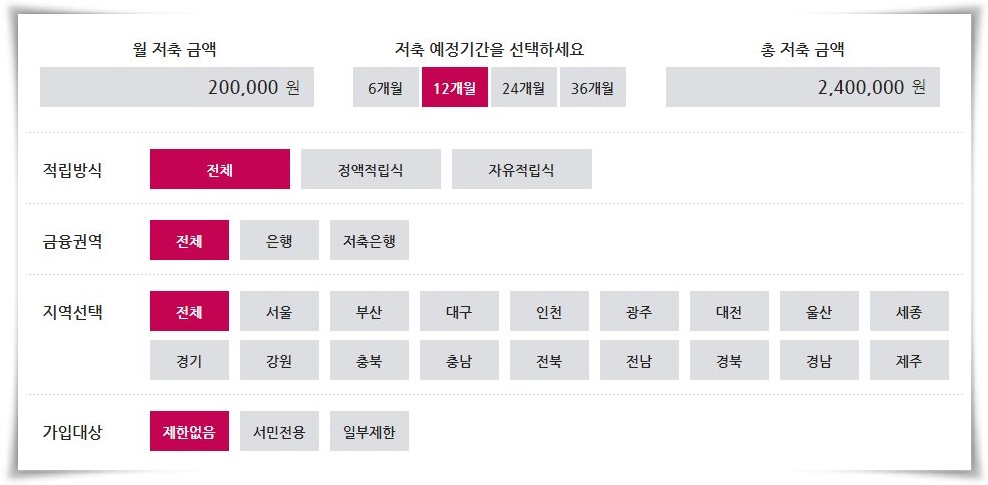 매월 20만 원의 적금을 넣었을 때 정기적금 금리 높은 곳을 찾아보자. 일반은행 및 저축은행을 통틀어서 전체 지역으로 설정하면 그 기준에 맞는 은행들이 나오는 것을 확인할 수 있다.