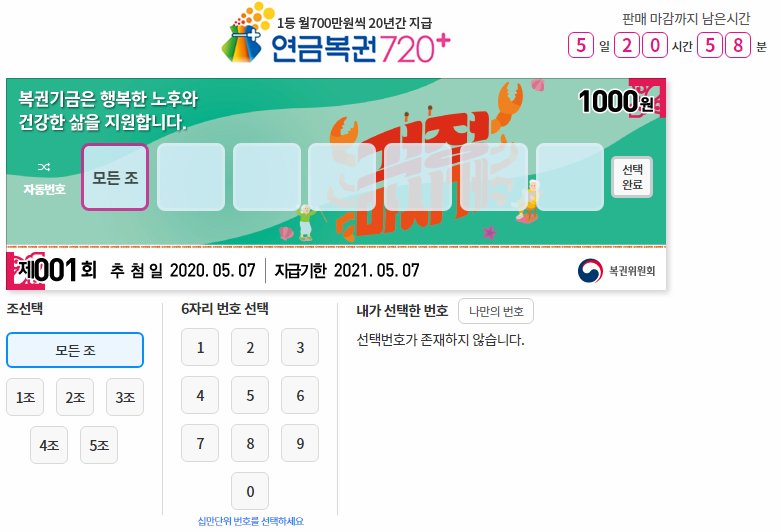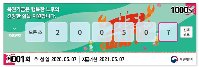 그래서 저도 출시 기념으로 직접 오프라인 매장에 가서 1조부터 5조까지 같은 번호를 구입해 봤습니다.  연금복권 720 추첨은 매주 목요일 12시 20분에 생방송 추첨으로 변경되면서 많은 관심이 모아지고 있는데요.