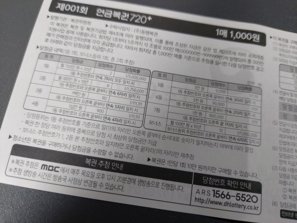 연금복권 720 1회 추첨 실수령액은 얼마일까? 본문