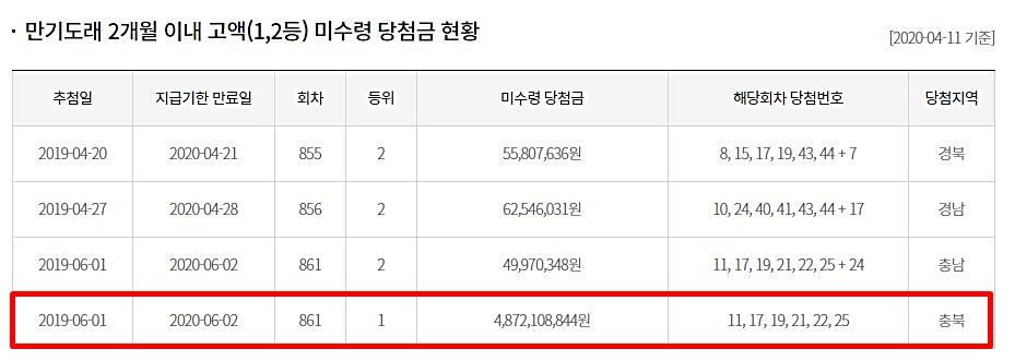 2019년 861회차 로또번호 추첨에서 1등에 당첨된 주인공이 아직도 로또1등 당첨금을 찾아가지 않고 있다고 합니다. 무려 1등 당첨금이 48억이라는 거액인데도 불구하고 찾아가지 않고 있는데요. 1년이라는 수령기간이 지나면 복권기금으로 귀속된다고 합니다. 이러한 뉴스를 볼때마다 당첨도 중요하지만 복권구매시 관리도 정말 중요한것 같습니다.