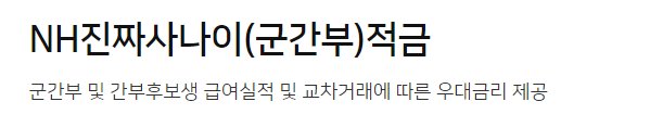 농협은행 예금 적금중에서 최고금리 기준으로 조회를 해보니 가장 높은 금리를 제공하는 것을 볼 수가 있습니다. NH 진짜 사나이(군간부 적금)의 경우 가입 대상자가 제한적이기 때문에 일반인들의 가입은 불가능합니다.