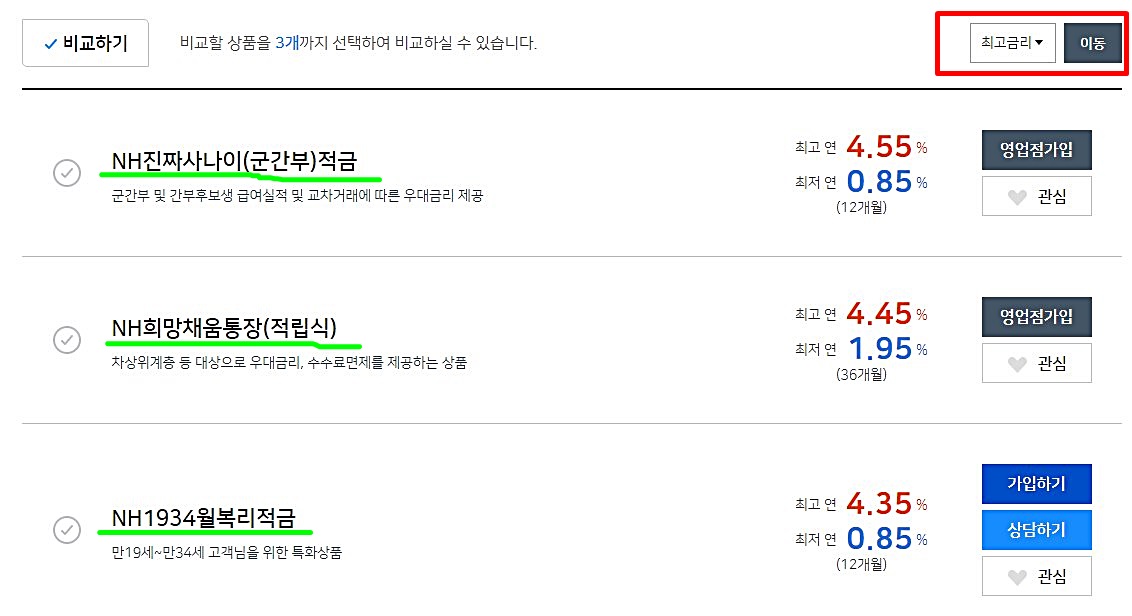 농협은행은 80개 이상의 예금 및 적금 관련 상품이 있습니다. 그중 어떤 상품이 가장 높은지 한번 알아보았습니다.