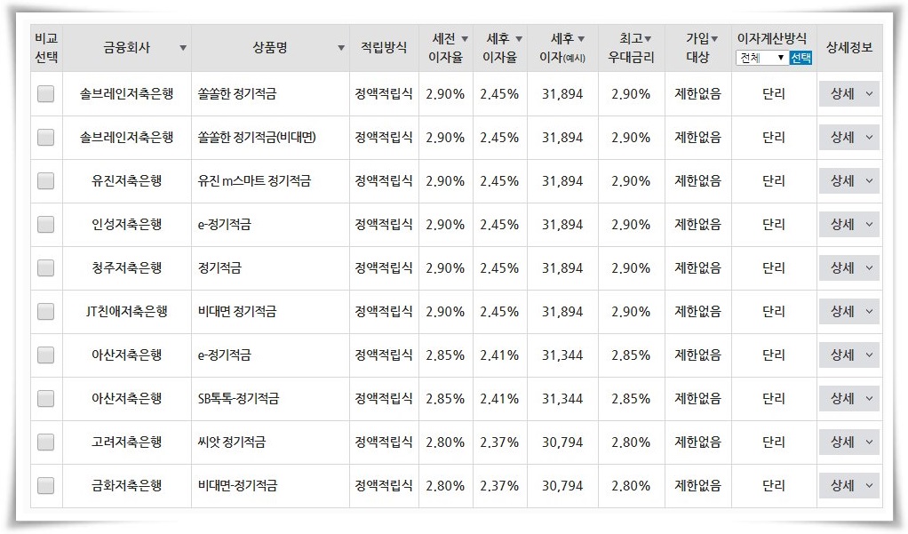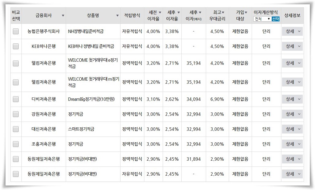 복리로 계산이 된다면 더할 나위 없이 좋지만 대부분의 정기적금은 이자계산방식이 단리로 적용되고 있다.