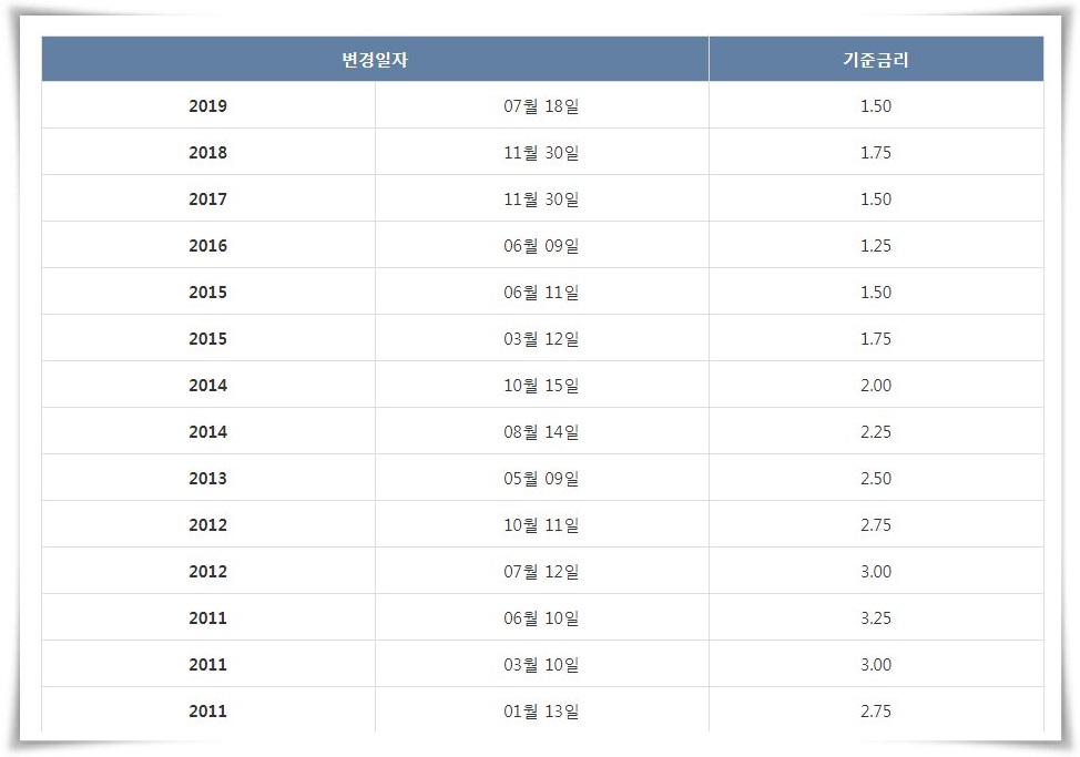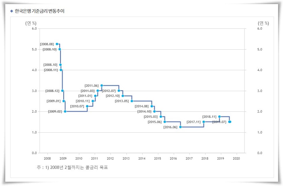 10년 전만 하더라도 은행의 이자율을 결정하는 한국은행 기준금리를 살펴봐도 3.00%대였다. 하지만 지금은 1.50% 까지 내려왔다.