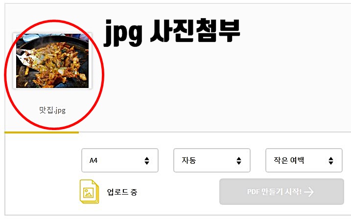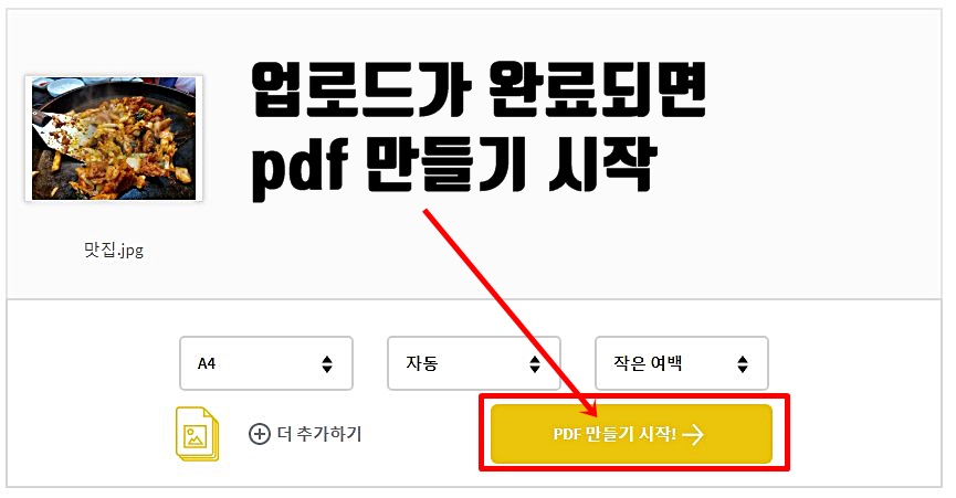 해당 업로드가 완료되면 pdf 만들기 시작 버튼이 노랑색으로 변하게 되는데요 이때 해당 버튼을 클릭하면 pdf 파일로 변환을 할 수가 있습니다.