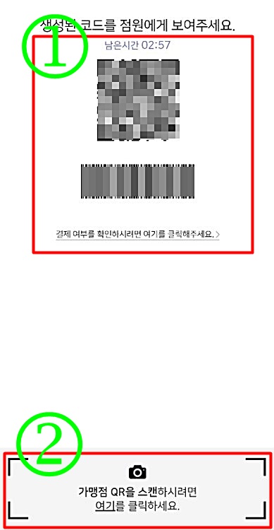 제로 페이를 통한 결제방식은 생성된 바코드식 결제방법과 QR코드 결제방식이 있습니다. 바코드 방식은 해당 직원에게 핸드폰을 보여주면 되지만 QR코드 방식은 해당 업소에 비치되어 있는 QR코드를 핸드폰에 있는 가맹점 스캔을 통해서 결제할 수가 있습니다.