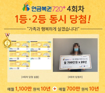 동행 복권 홈페이지에 들어가니 요즘 한참 이슈가 되고 있는 연금복권 720 1등 당첨자에 대한 인터뷰가 많은 관심을 받고 있습니다. 월 수령액이 기존 500만 원 에서 700만 원으로 인상이 되면서 늘어난 당첨금으로 주목을 받았는데요. 지난주에도 1등, 2등이 동시에 당첨이 되면서 매월 1,100만 원이라는 연금을 10년 동안 받게 되었다고 합니다.