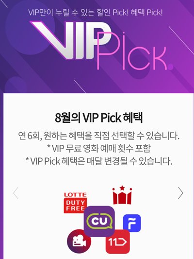 T월드에 접속하면 VIP 등급의 경우 위와 같은 VIP Pick를 확인할 수가 있다. 티멤버십 영화예매는 여기서 가능하니 한번 들어가 보자.