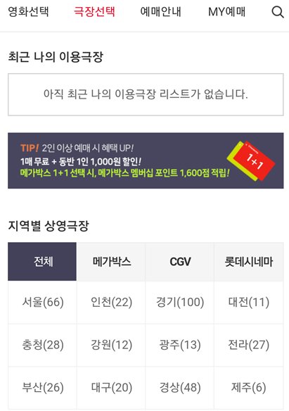 pc에서 볼 수도 있지만 앱을 다운로드하면 훨씬 편리하게 영화예매하기도 쉬우니 꼭 앱을 사용하길 바란다.