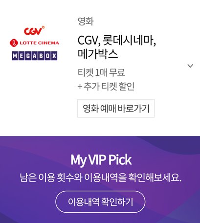 티멤버십 vip 영화예매는 롯데시네마, 메가박스, cgv 모두 가능하다. 앱에 안내되어 있는 대로 영화예매 바로가기를 누르면 해당 예매 페이지로 연결이 되기 때문에 굳이 극장 홈페이지로 접속할 필요가 없는 것이다.