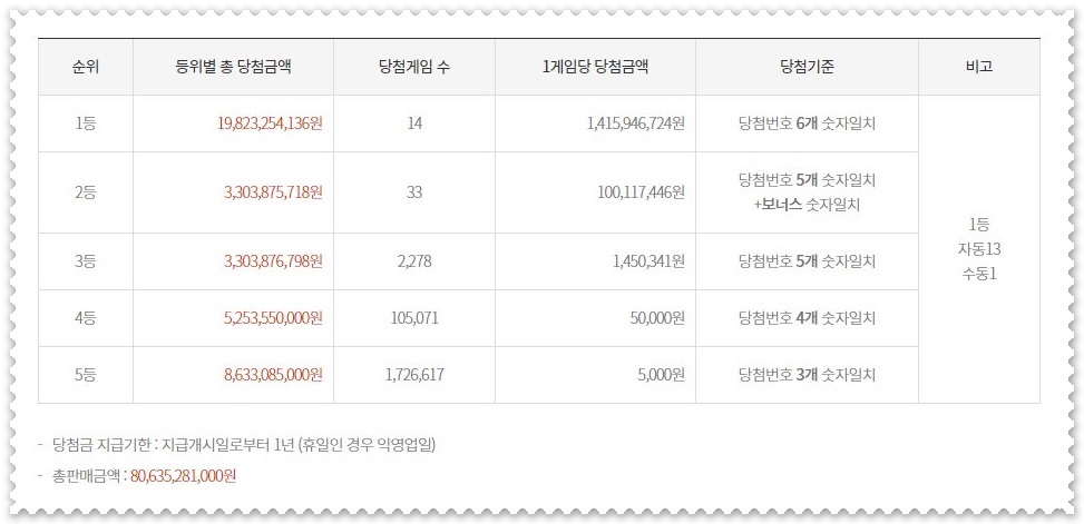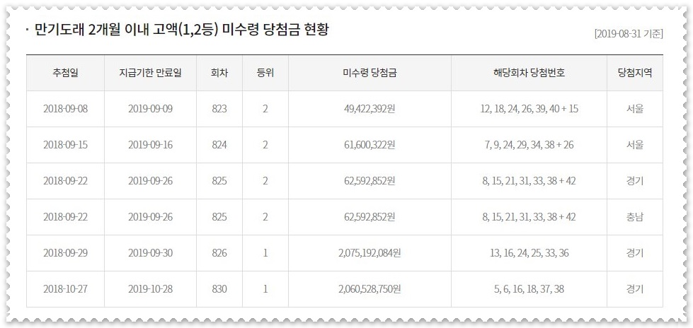 하지만 이렇게 힘들게 1등에 당첨이 되었음에도 불구하고 매주 당첨금을 수령하지 않아서 지급기한 만료가 되는 당첨자도 발생한다고 한다.