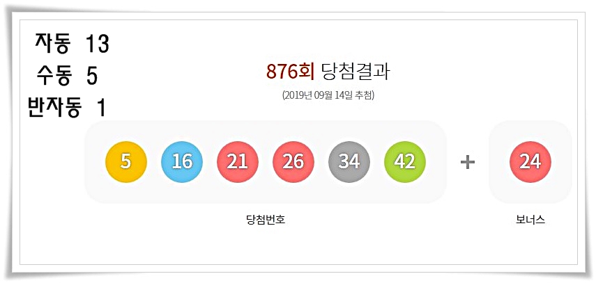 876회 로또당첨번호 추첨에서는 수동구매보다는 자동 구매가 대세를 이루면서 13명이라는 많은 당첨자를 배출했다.