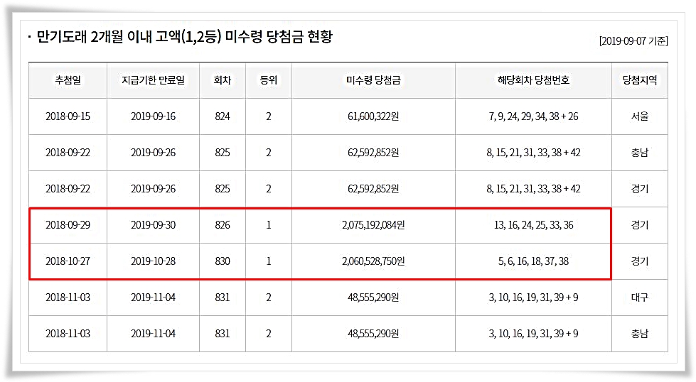이러한 미수령 당첨금은 매주 마다 나오고 있는데 2등에 당첨된 사람뿐만 아니라 20억이라는 어마어마한 금액에 당첨이 되고도 찾아가지 않은 1등 당첨자의 당첨금액도 한 달이라는 기간 내에 수령해 가지 않으면 복권기금으로 귀속이 된다고 한다.
