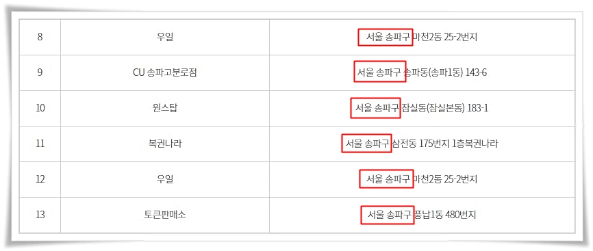 또한 서울지역중 송파구에서 총 6명의 2등 당첨자가 나오면서 경기도 광명시와 함께 로도 명당으로 자리 매김 하게 되었다고 할 수 있다.