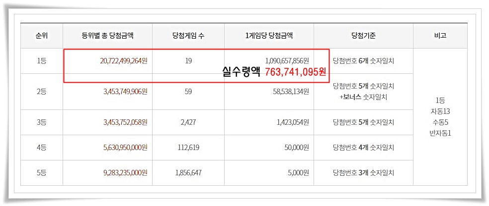 많은 당첨자들이 배출되면서 역대급 낮은 당첨금 지급이 아쉬울수도 있는 것 같다. 참고로 지난 2018년 추석에 추첨된 로또 1등 당첨금액은 16억 5800만 원 정도였다.