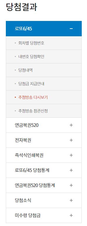 동행 복권 홈페이지에는 매주 로또복권 추첨방송 다시 보기 서비스를 제공하고 있다. 이뿐 아니라 그동안 추첨된 로또번호 통계 모음인 번호별 통계, 색상별 통계, 기간별 미출현 번호들을 확인할 수 있어 로도 마니아들이 많이 활용하고 있다.