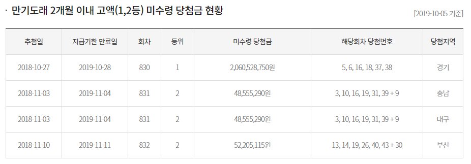 1등에 당첨이 되었음에도 불구하고 왜 아직 찾아가지 않은것일까 생각을 해보면 아마도 복권을 분실했거나, 훼손이 되었을 가능성이 가장 높지 않나 생각한다.