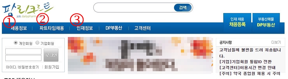 감히 국내 최대 규모라 할 수 있는 약사 전문 취업사이트인 팜 리쿠르트답게 홈페이지에 접속하자마자 많은 병원들의 취업정보가 소개되고 있다.