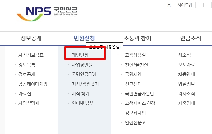 개인 민원을 들어가서 공인인증서 로그인을 하면 국민연금 가입내역 조회를 확인할 수 있는 페이지가 나온다.