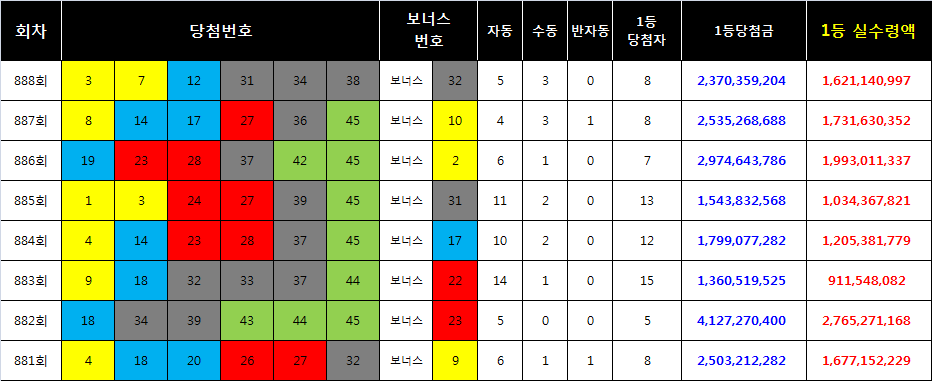 이번 주에는 과연 어떤 번호가 로또889회 당첨번호로 나올지 아무도 모르겠죠. 하지만 조금만 분석해 본다면 확률적으로도 높아질 수 있다는 점 참고하셔서 1등 당첨의 행운을 잡으시길 바랍니다.