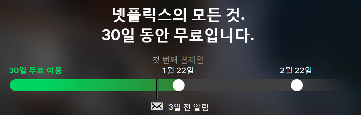 한 달이라는 무료이용 기간이 종료가 될쯤 문자서비스로 알림을 주기도 하기 때문에 넷플릭스 한달 무료 이용은 꼭 해봐도 좋을 것 같습니다.