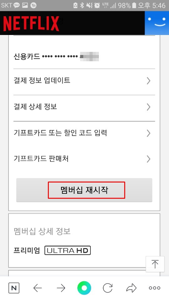 해지가 되고 난 후의 계정을 살펴보면 멤버십 재시작이라는 버튼을 확인할 수가 있는데 이 버튼이 나와야만 정상적으로 넷플릭스 해지가 된 것이라고 하니 꼭 확인하시기 바랍니다.