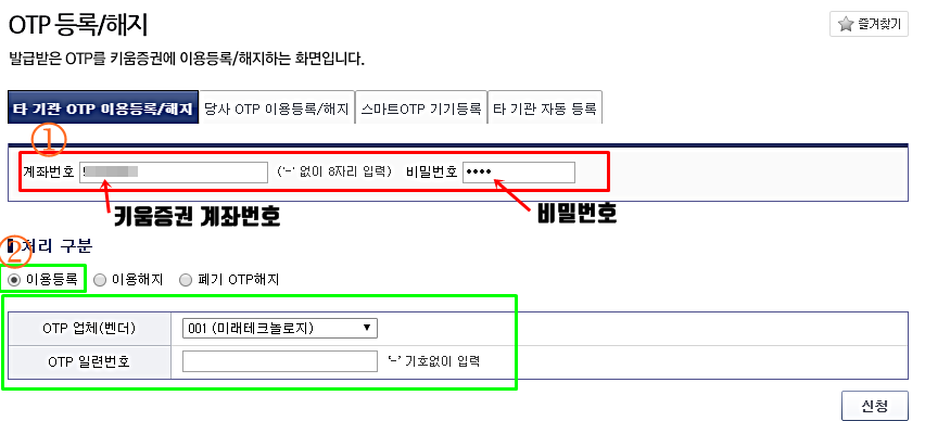 키움증권 공인인증서갱신 otp 자동 타기관등록 해결방법