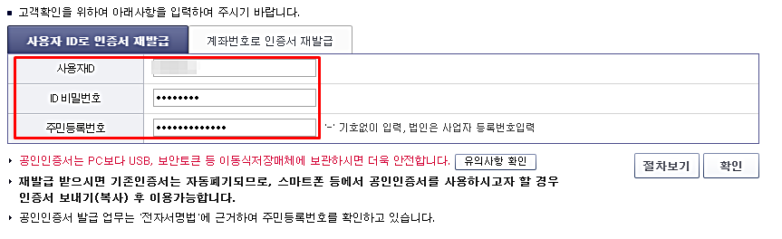 난 기존에 가지고 있는 ID가 있어서 ID를 활용하여 공인인증서 재발급을 하기로 했다.