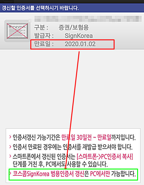 바로 내가 발급받고자 하는 무료 공인인증서는 PC에서만 갱신이 가능하다는 것이다.