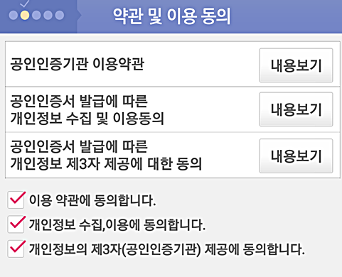 기본적인 이용약관 동의를 선택 후 인증서 발급을 하던 중 한 가지 사실을 알게 되었다