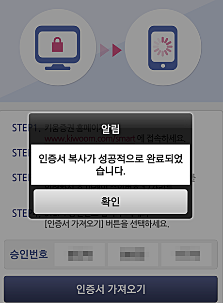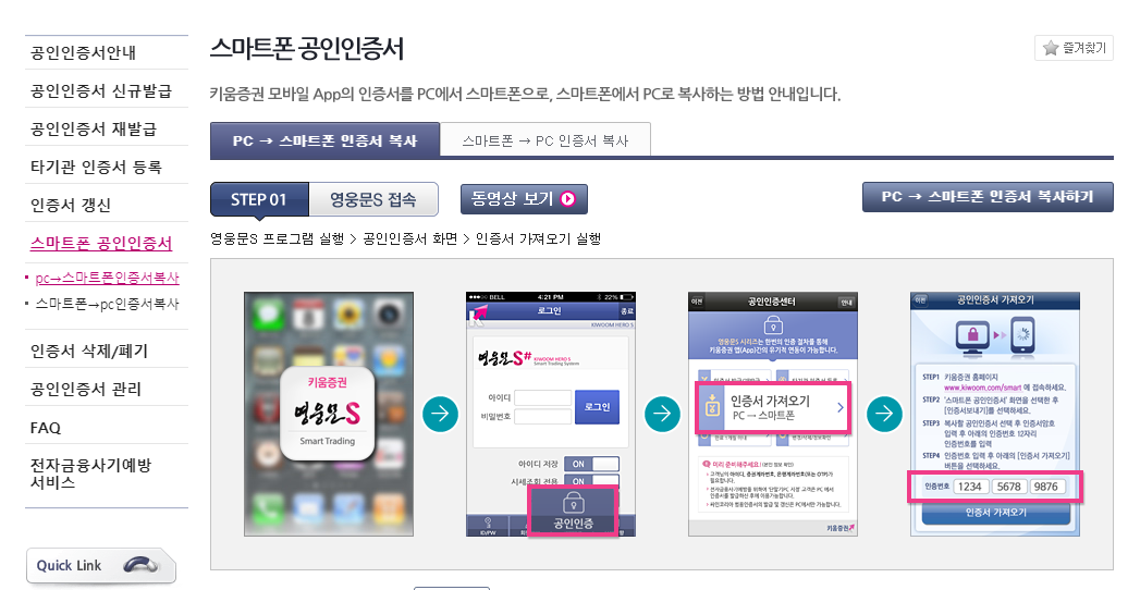 영웅문s 키움증권 공인인증서 발급 및 갱신방법 pc →스마트폰 복사방법 본문