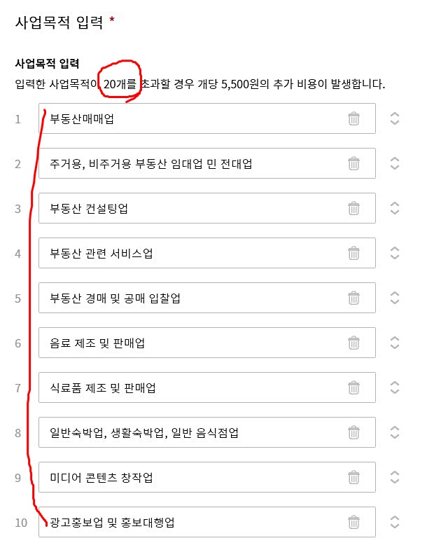 내가 설립하고자 하는 법인회사가 어떠한 사업을 목적으로 설립하는지 자신이 하고자 하는 업무를 찾아서 기재하면 된다.
