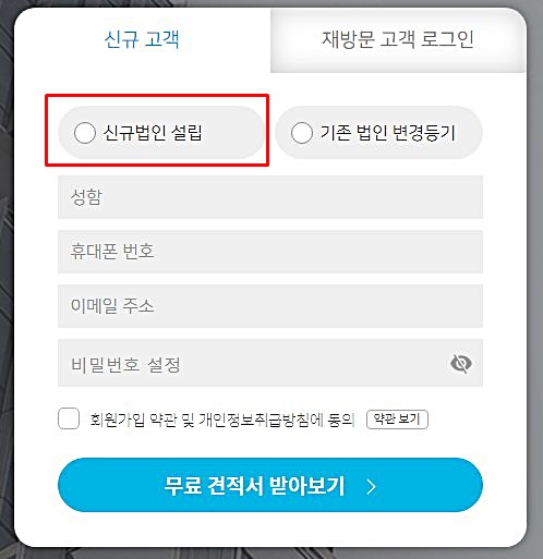 그다음 신규법인 설립을 누르고 들어가서 부터는 안내되는 순서대로만 따르면 된다.