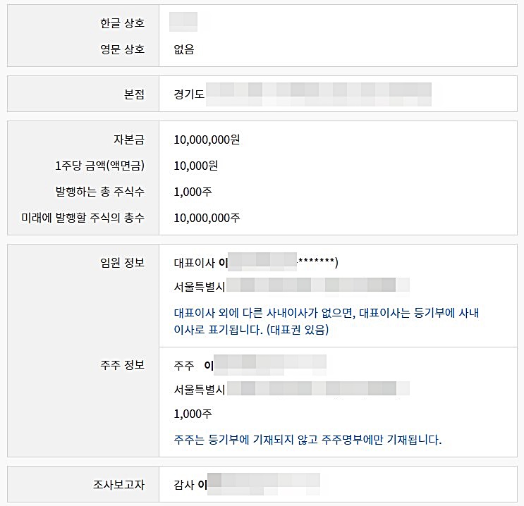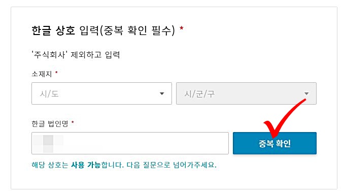 회사 소재지에 동일한 사명이 있으면 안되기 때문에 중복여부를 꼭 해야하는것이 중요하다.
