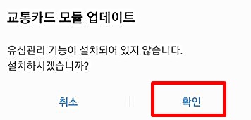 교통카드 기능을 사용하기 위해서는 기본적인 교통카드 모듈을 업데이트해야 하는데 한 번도 사용을 하지 않았기 때문에 설치해야만 했다.