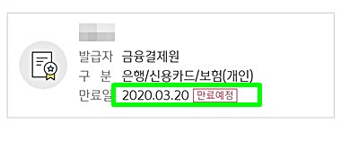 작년에 발급받아서 사용하고 있는 공인인증서는 2020년 3월 20일 날짜로 만료예정이다.