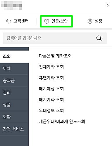 은행 어플로 접속하면 대부분 메인화면에 공인인증센터가 있는 것을 알 수 있다. 신한은행 어플의 경우 메인화면서 안내가 되고 있어 쉽게 찾을 수 있다.