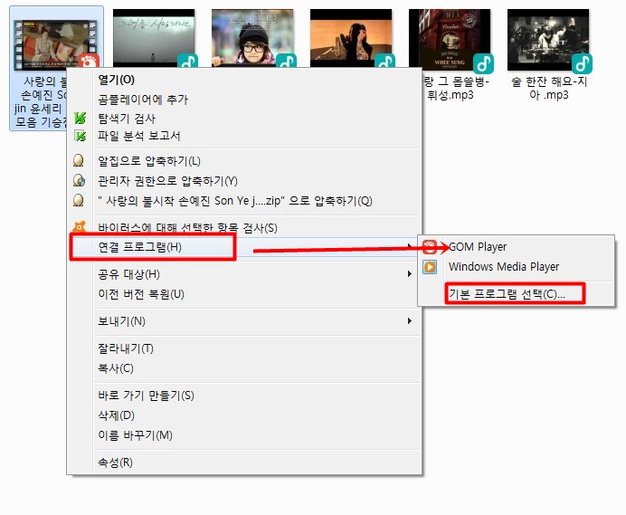 한 가지 주의할 점은 pc의 경우 기본적으로 윈도 media player이 설치되어 있기 때문에 기본 프로그램으로 곰플레이어를 지정하거나 선택을 해줘야 하는 경우가 발생한다.