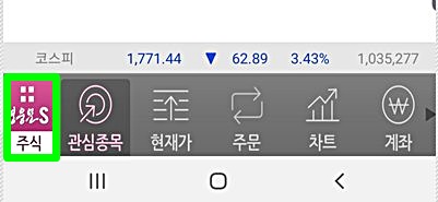영웅문 어플을 실행하면 화면 가장 하단 부분에 영웅문 S 주식이라는 카테고리가 있는 것을 확인할 수 있다.
