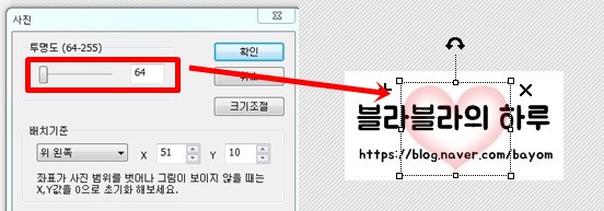 투명도 값을 어떻게 설정하느냐에 따라서 하트 모양이 진해지고 흐려지는 것을 확인할 수 있습니다.