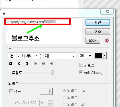 한글로만 워터마크를 만드는 분들도 있지만 자신의 블로그 주소를 넣는 분들도 많이 계시죠.