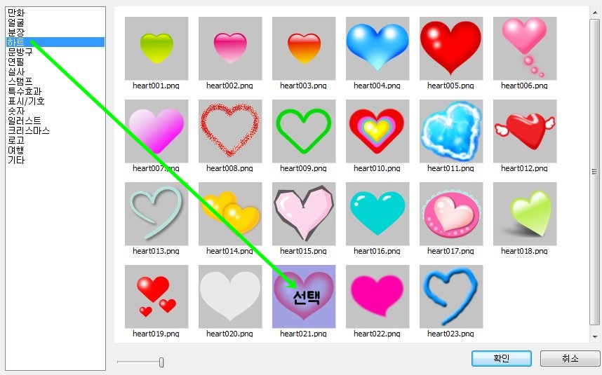 전 이 중에서 하트 모양을 선택해 보았습니다.